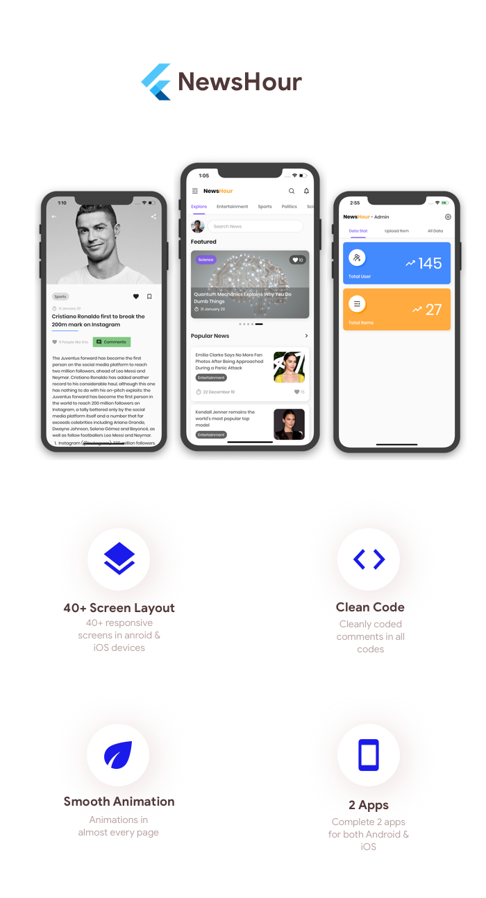 - Source code of complete news app for both iOS & Android