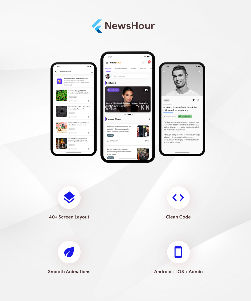 News Hour is complete news app with admin panel which is developed on Flutter framework developed by Google. It works on both android & iOS. It has all common and special features that a typic news app has. We have used lots of animations to make this app user friendly. It could be able to satisfy users with impressive UX design and smooth performance on both iOS and Android devices. If you are looking for a news or blog app for both iOS and android, News Hour could be the best option for you.