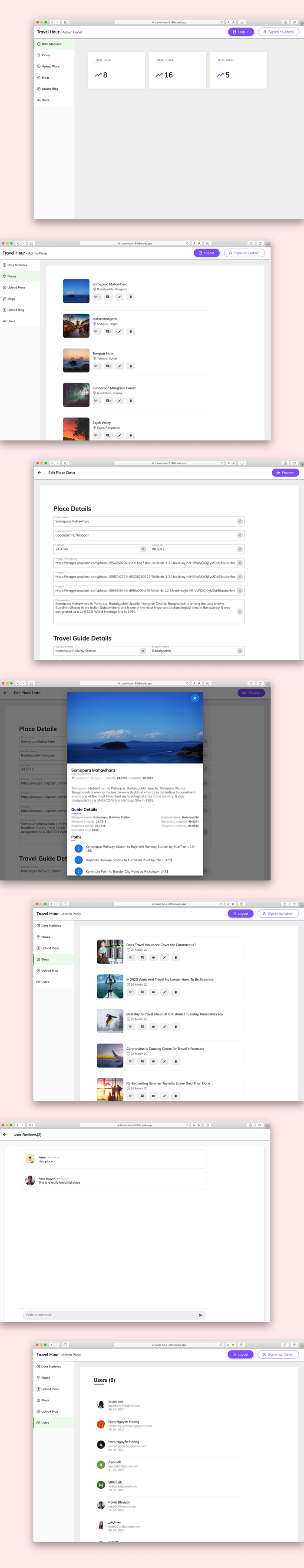 - Admin Web App Demo : https://travel-hour-5199d.web.app/